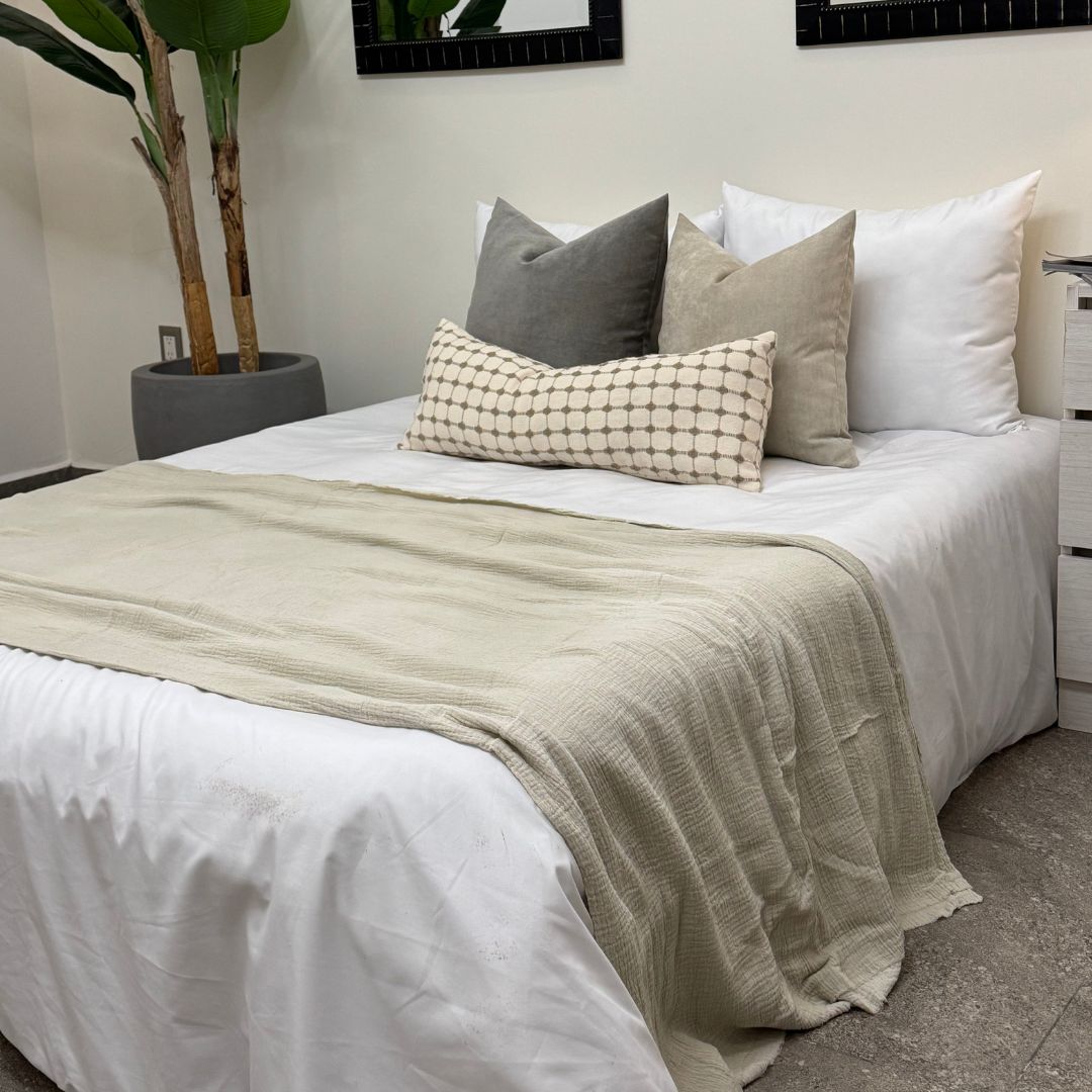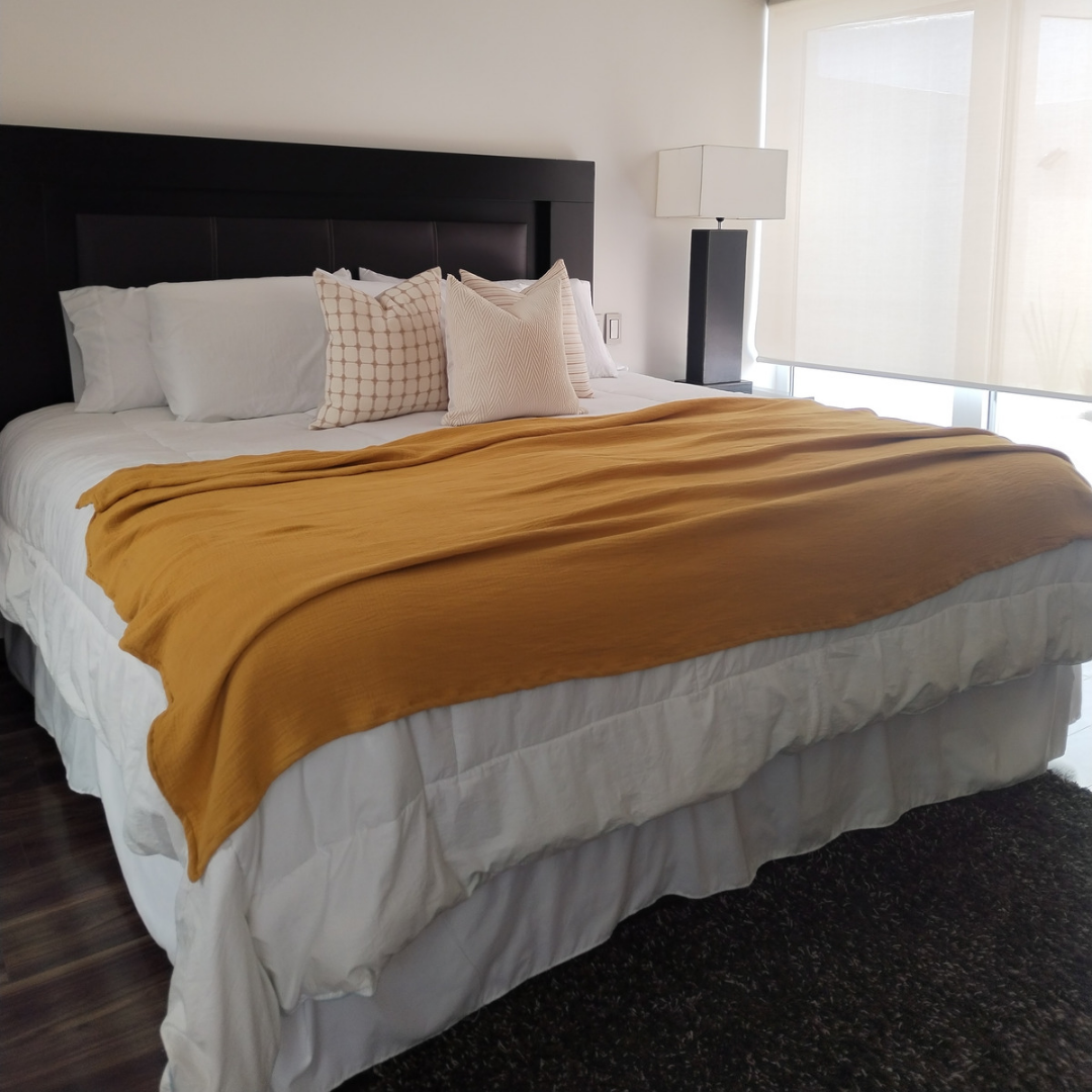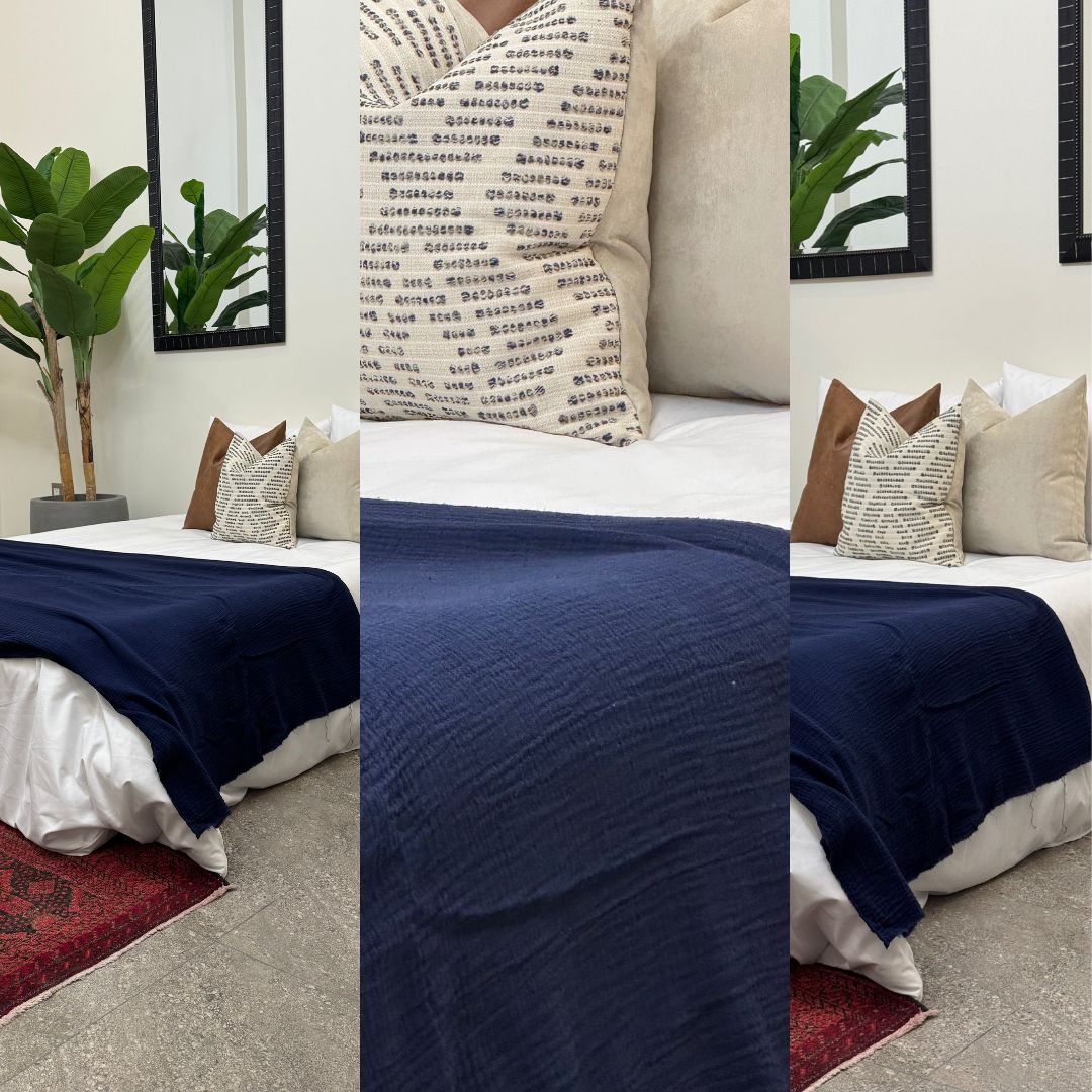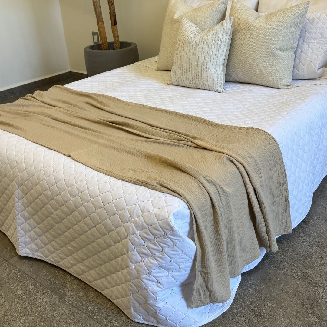 "Que tu hogar se vea impecable y cómodo todo el año. ✨ Nuestras frazadas de algodón son frescas, ligeras y decorativas. Dale a tu espacio ese toque acogedor que todos aman. 🏡💕"